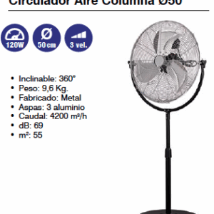 VENTILADOR / CIRCULADOR DE AIRE-COLUMNA 120w D 50 cm 3 vel (Ref: 841/MT01487)